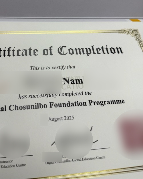 안녕하세요. 올해 1월부터 8월까지 디지틀조선일보 국제교육센터에서 국내 파운데이션 과정을 이수하고